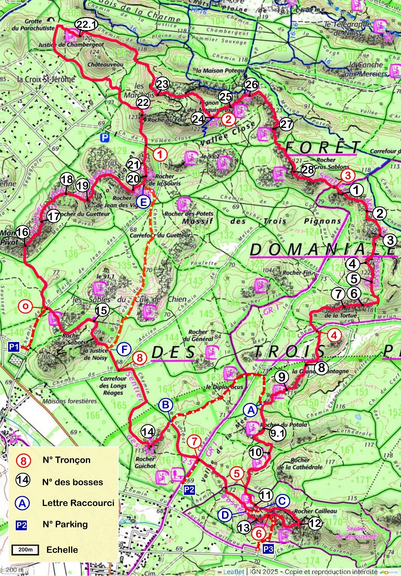 copyright IGN 2024 carte aux 1/16000ème Découverte des lieux d’exception Forêt de Fontainebleau