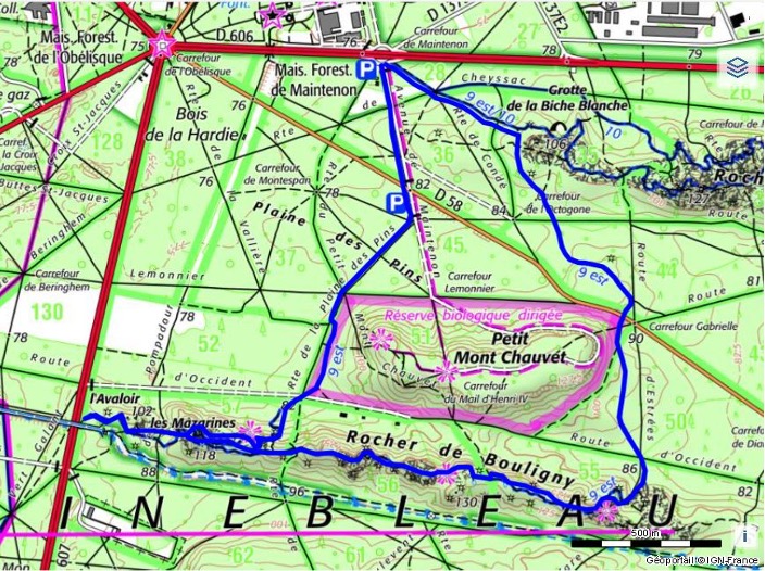 copyright IGN 2024 carte aux 1/16000ème Découverte des lieux d’exception Forêt de Fontainebleau