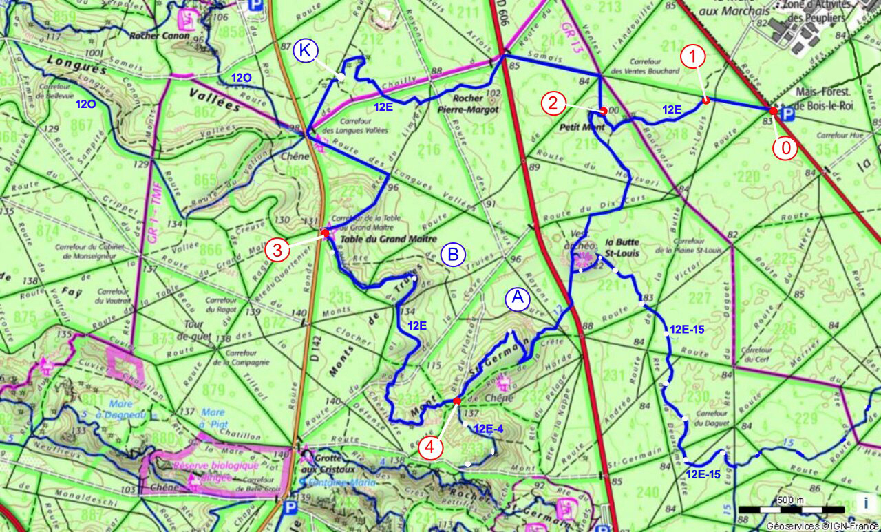 Départ : Parking de la Maison Forestière de Bois-le-Roi sur la D138.
