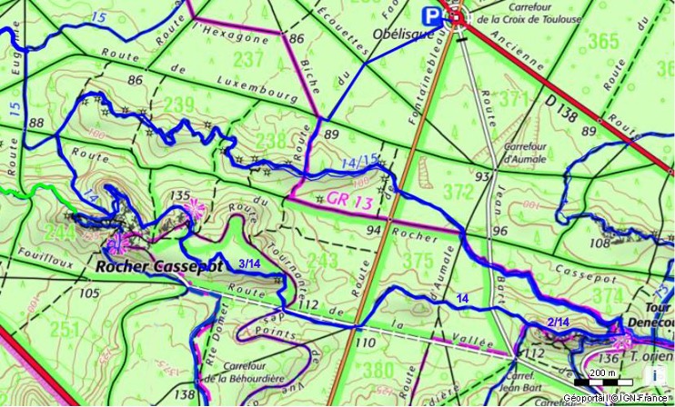 copyright IGN 2024 carte aux 1/16000ème Découverte des lieux d’exception Forêt de Fontainebleau