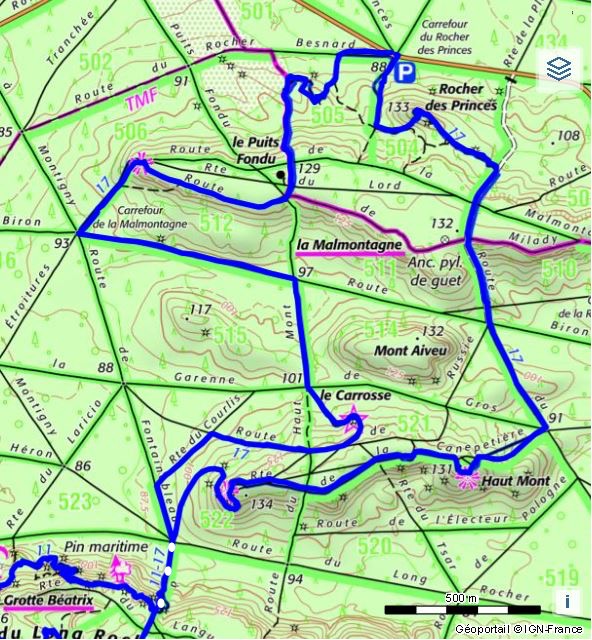 copyright IGN 2024 carte aux 1/16000ème Découverte des lieux d’exception Forêt de Fontainebleau