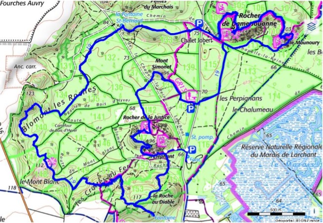 Départ : Parking de l’Éléphant (possibilité de partir du Parking de Bois d’Hyver).